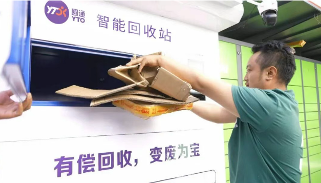 圓通林芝分公司在當地6個居民小區投用智能回收站,設備均設置在快遞柜旁,打造“取件+拆箱+回收”一站式便民場景。居民取完快遞后,只需點擊屏幕即可開啟箱門投放紙箱,回收收益會實時結算至手機。