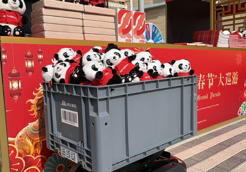 2月8日,在阿聯(lián)酋,2026迪拜“溫暖迎春·歡樂(lè)春節(jié)”大巡游熱鬧展開(kāi),京東物流受邀參與其中,京東物流自研的前沿物流設(shè)備“智狼”滿載代表中國(guó)特色的熊貓玩偶,現(xiàn)場(chǎng)派發(fā)給當(dāng)?shù)叵M(fèi)者,引來(lái)廣泛關(guān)注。